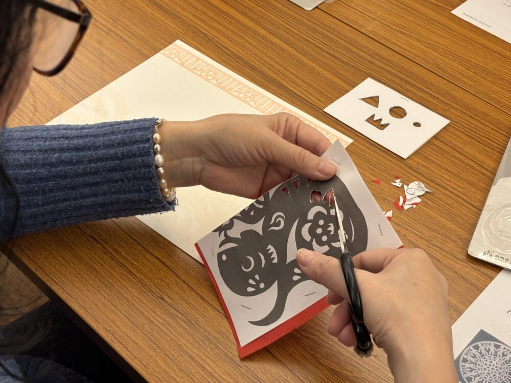 「剪紙(せんし)」という、中国の切り絵・切り紙があります。一般的には紅い紙でめでたいモチーフを題材に切り、春節や結婚式など、めでたい時に飾られています。